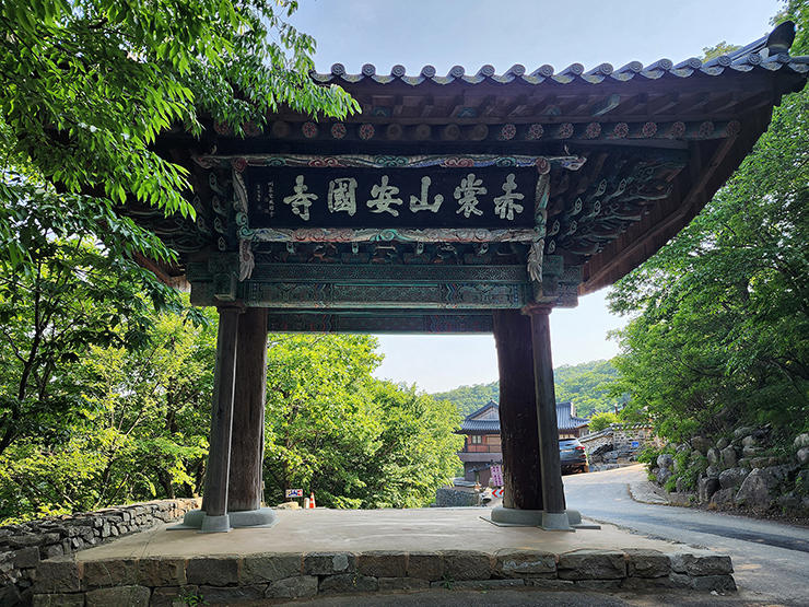 여기서 도보로 몇 분이면 청하루靑霞樓가 내다 보이는 우람한 가람이 앞을 우뚝 막는데, 예가 바로 적성산 안국사安國寺인 것을.