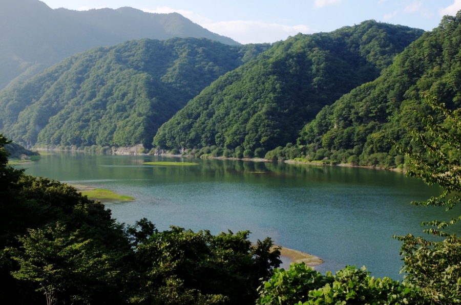 말로만 듣던 무주 구천동, 소태정 고개를 넘어와 일반 국도 30번을 따라 금지마을에서 19번 분기점을, 그리고 덕유산 삼배 짜는 치목마을에서 좌회전을 하면 강을 낀 질펀한 인삼밭과 ‘별마을가든’이 있고 다시 터널을 빠져나오면 아슬히 높은 산꼭대기에 치마를 두른 듯한 적상호赤裳湖를 만난다.